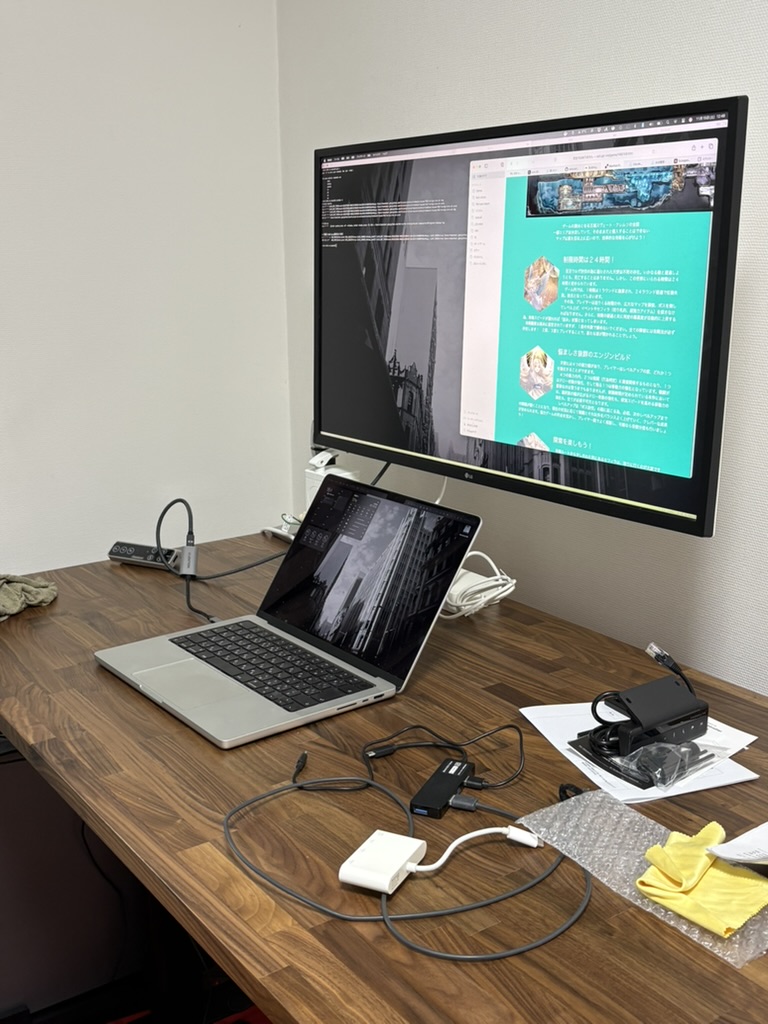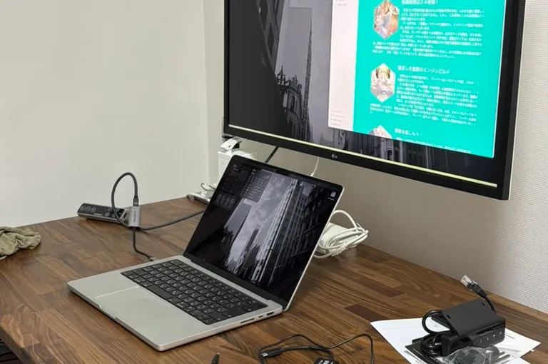 で、140cmで十分でした。ノートPCとディスプレイを置いたうえで、紙のノートを広げられます。しかも1冊じゃなくて、2冊同時に。机の上にまだ先がある。