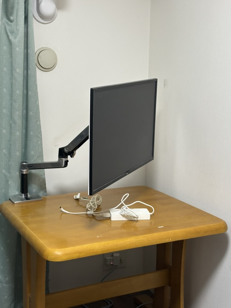 もともとは2人用のダイニングテーブルで作業していました。ノートPC、ディスプレイ、キーボード、トラックボール。全部載ってはいる。でも「それ以上何も載せられない」がずっと続いていました。