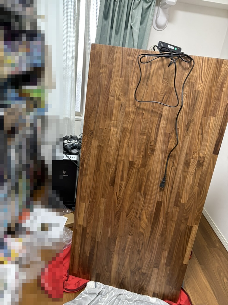 PREDUCTSのウォールナット天板とFlexiSpot E7昇降脚で140cmデスクを組みました。天板の質感、昇降の安定感、組み立てのリアルを書いています。
